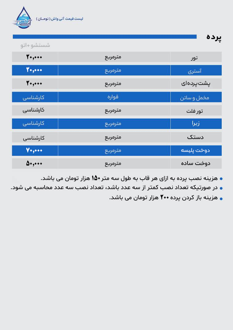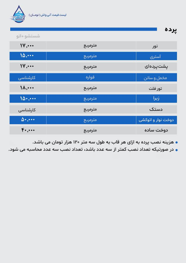شستشو : خدمات درخواستی روی پرده ها طبق دستورالعمل مشخصه روی هر یک از آنها با دقت و کیفیت بالامطابق استاندارد و مرغوبترین مواد شوینده انجام می شود.