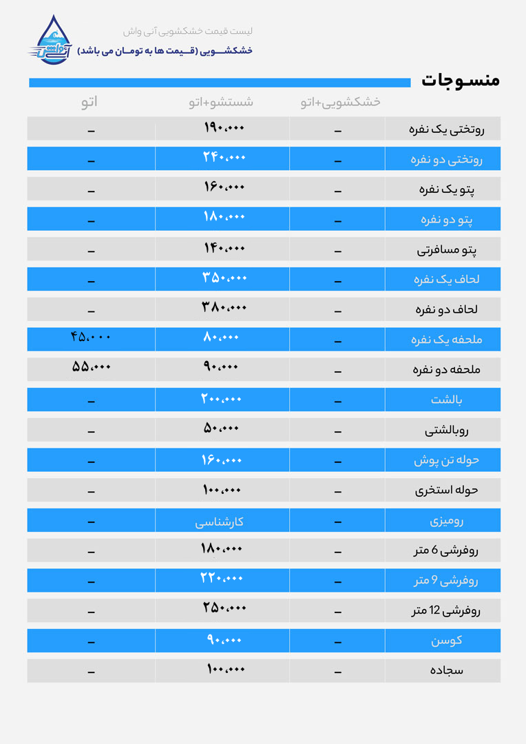 شستشو: خدمات درخواستی با دقت و کیفیت بالا ، مطابق استاندارد و مرغوبترین مواد شوینده انجام می شود.